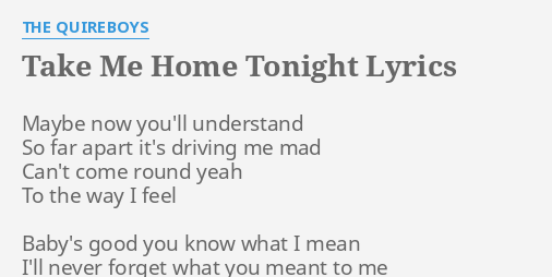 I get nightmares I hate to sleep alone. Verse 2 I get frightened in. The Very Best 80s Radio Hits Take Me Home Tonight Be My Baby song offline. C 1985 Sony Music Entertainment. Take Me Home TonightBe My Baby Lyrics. Take me home tonight I dont want to let you go till you see the light Take me home tonight Listen honey just like Ronnie sang. Take Me Home Tonight.